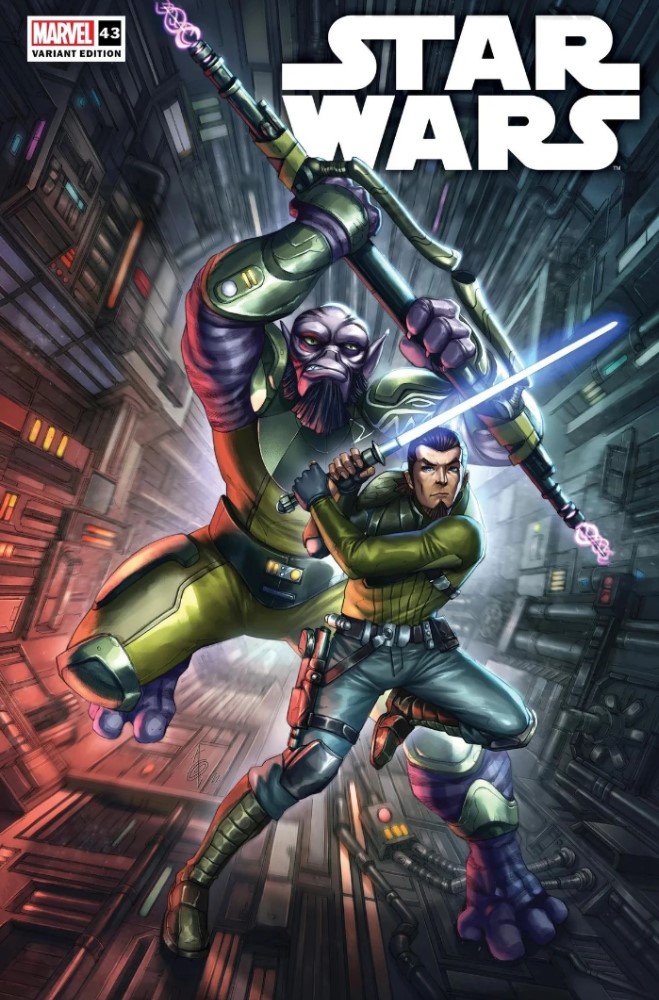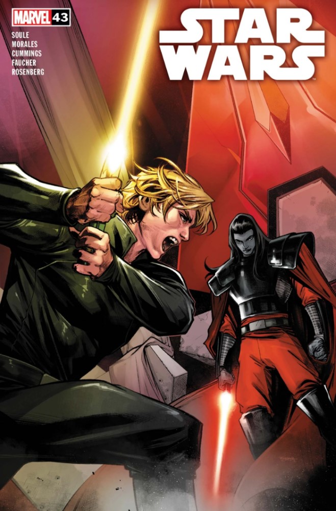 We open issue 43 where we left in issue 42 as Luke Skywalker – in a trance under the watchful eyes of Auntie Fee and Gretta – sits trapped, beaten and bloody inside the prison of an ancient Sith, who reminds him that the good days blend into forgettable pulp, but the pain is what one remembers. Luke insists he only came to help, but she is immovable and tells him that pain is part of our history, and how together they could build a better version. After reminding him that his lost hand will never heal we see Luke pause to think, remembering the severing if his hand by Darth Vader and stepping out of this ‘mind prison’.