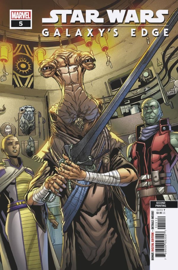 In what has been an unexpected treat of a series, Galaxy’s Edge comes to an end and while the story so far hasn’t been a stone cold classic, this final issue does a solid job of showing why Dok Ondar has such a widespread reputation as an antiques trader of galactic repute. Put it this way, if you’re ever in the position to shake hands with him, count your fingers afterwards.