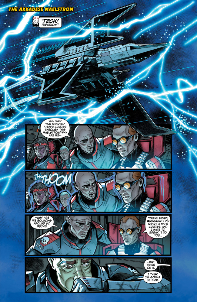 We open in the Akkadese Maelstrom, where the Havoc Marauder is bouncing around the fierce storm, a bumpy ride that is the best Tech can navigate but also the worst for a weak-stomached Wrecker. They punch through the storm into clear space where Kessel lies before them, and upon landing they spy the ship they’ve been chasing, and the thief they are hunting. Getting closer to hear what’s being said they manage to ascertain that the Pykes seem unwilling to transport the thief offworld, but moments later they appear to strike a deal. Wrecker says they need to board the Pyke ship to raid it, but Crosshair shoots that down, stating they’d be dead before they set foot on the ship. Hunter is wary of attracting the wrong kind of attention, but Tech believes he has an idea, something Wrecker is keen to get on with.