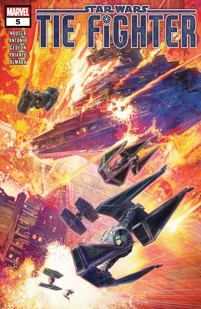 For an issue that is predominantly based around an attack on the floating rebel recruitment base, the fifth and final issue of TIE Fighter manages to fit in plenty of character moments that punctuate the dogfights and show us just what – and why – these Imperial pilots are fighting….and then throw in a curveball right at the end of the issue, leaving us wanting more. As a series, the issues have built and built and built to this finale, as Shadow Squadron figure out, identify and ultimately take out this recruiting base, and to see them succeed – to see Imperials succeed – shouldn’t but DOES give us some satisfaction.