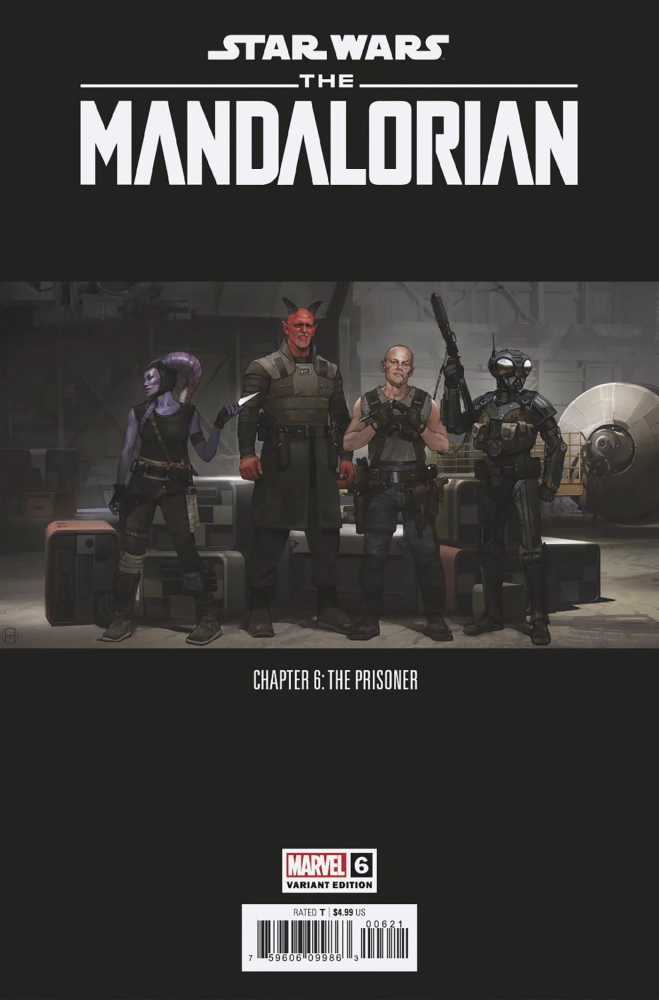 The adaptation of the 2019 debut season of The Mandalorian continues with the sixth episode The Prisoner, as we join Mando meeting with old associate Ran to take a job – his problems with the Bounty Hunters Guild precluding any work with that organisation – that involves taking a crew aboard the Razor Crest to boost a colleague who’s been captured. Here we meet former Imperial sharpshooter Migs Mayfeld, Devaronian brute Burg, droid hunter Zero and Twi’lek Xi’an. Unsure why they are taking the Crest, Zero stumbles across a message from Greef Karga regarding the delivery of a ‘quarry’ and learns that the ship is off the grid of both the Empire and the New Republic.