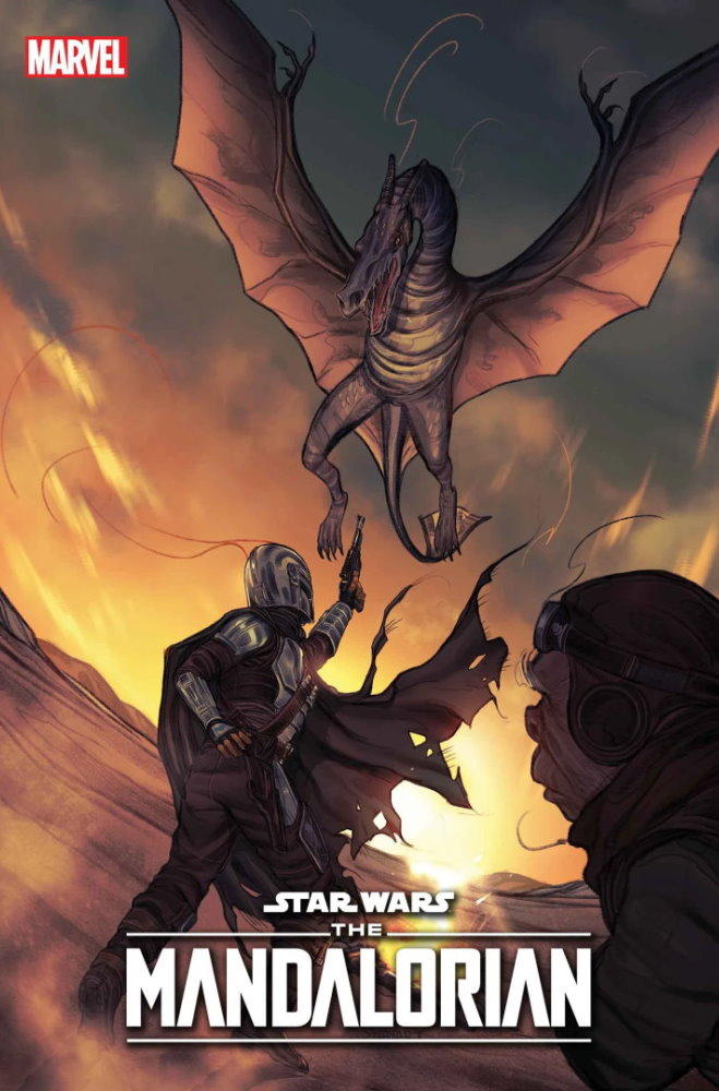 We’re racing towards the conclusion of the debut season of The Mandalorian, and all the threads that have been building in the background begin to come together in this episode / issue as Greef Karga contacts Mando to make a proposition. With the Client tightening his grip on Nerarro and Karga convinved that he’ll stop at nothing to get the child, he suggests returnign to the planet to join forces and achieve their mutual goal of taking out the Client and clearing Mando’s name with the Bounty Hunters Guild, allowing him and the child to go their way in peace. Mando heads back to Sorgan to make an offer to Cara Dune to join him in taking down the Imperial. As a former Rebel, she readily agrees, and so they head offplanet, aiming for Arvala-7 and the Ugnaught Kuiil, who has repaired IG-11 into a passive serving droid. He insists that the droid is not a threat, and so IG-11 is tasked with protecting the child while Kuiil loads up the blurrgs and they leave the planet.