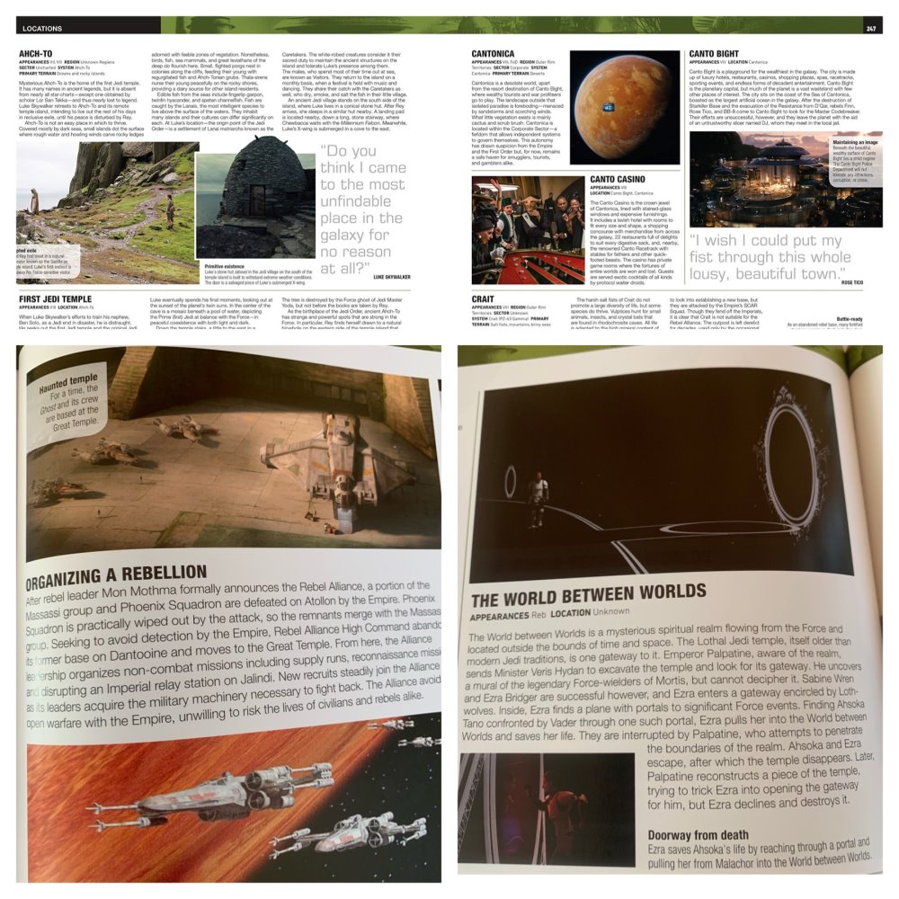 “I wrote all the new entries for existing things (Ep7, 8, R1, Solo, Resistance & Rebels, Marvel, Battlefront). Cole updated the existing entries for the older stuff. DK wrote things for Ep9. I included content from Forces of Destiny, Del Rey and Disney Publishing novels and IDW comics too.