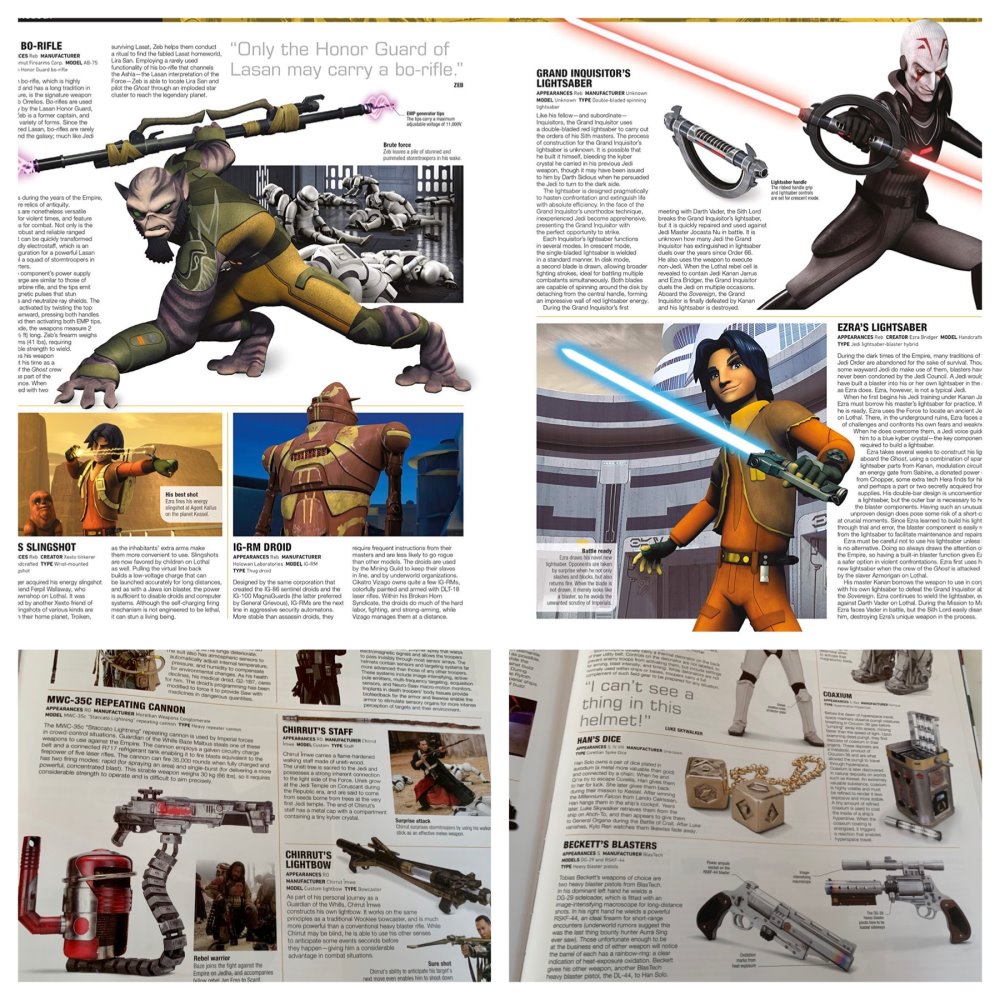 One of the first things my husband and I noticed is the expanded Technology section including more details on the weapons. My husband was really impressed by the names and capabilities of each of the weapons used in The Force Awakens, The Last Jedi, Solo, Star Wars Rebels and Rogue One. He spent a quite a bit of time looking at the details of each one and which real world weapon these were inspired from.